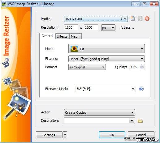 ![]() VSO Image Resizer - программа для изменения размеров цифровых картинок и изображений в различных графических форматах (на данный момент поддерживается работа с файлами JPEG, GIF, BMP, TIFF, CR2, NEF и т.д.). Также в утилите имеются возможности для компрессии файлов, конвертирования из одного формата в другой, экспорта, наложения и управления картинками. VSO Image Resizer интегрируется в оболочку Windows, может работать в пакетном режиме, обладает расширенными опциями настройки для продвинутых пользователей. VSO Image Resizer пригодится тем, кому часто нужно уменьшить размер фотографий, например, для отсылки по электронной почте, а также для веб-мастеров или тех, кто собирается поместить изображения в интернете.Программа поддерживает форматы bmp, jpeg, gif, png. Если вы хотите конвертировать картинку для просмотра на iPod, Sony PSP, HDTV и DVD, просто выберите соответствующую заготовку, и программа сама преобразует изображения в нужный формат. VSO Image Resizer наведет порядок в ваших фотографиях, уменьшая их разрешение или перемещая их на вашем диске. Это отличный инструмент для тех, кто хранит цифровые фотоснимки и изображения на компьютере, и кому необходимо изменять их размеры, сжимать, конвертировать, создавать копии, импортировать и упорядочивать фотографии. С этой программой вы можете создавать такие изображения, какие можно без особых проблем отсылать по email, быстрее их загружать, легко перемещать их из папки в папку, изменять их формат, редактировать большое количество фотографий и таким образом экономить свободное место на вашем жестком диске. VSO Image Resizer интегрируется в оболочку Windows и простой щелчок правой кнопкой мыши по изображению позволит вам работать с ним.